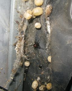 岡山県ではセアカゴケグモが2008年に初確認されて以来、県内各地(岡山市、瀬戸内市、玉野市、津山市、笠岡市など)で定着・生息が確認されているようです。メスは毒を持ち、噛まれると腫れや痛み、発熱などを引き起こすことがあります。